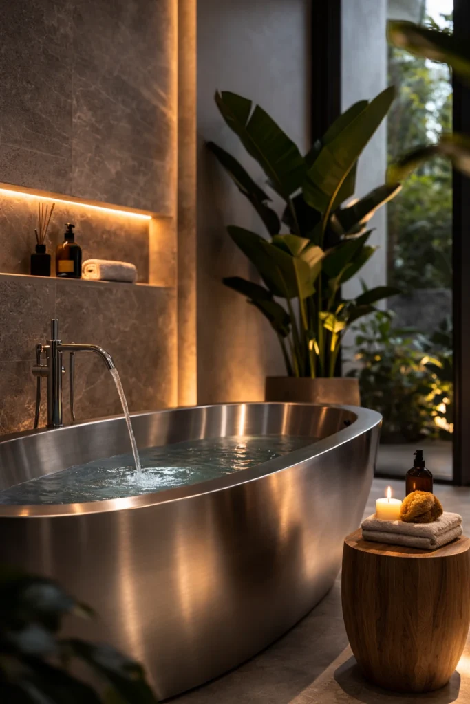L’acciaio inox AISI 316L garantisce igiene, durata e un’estetica contemporanea capace di valorizzare ogni ambiente bagno o spa privata.